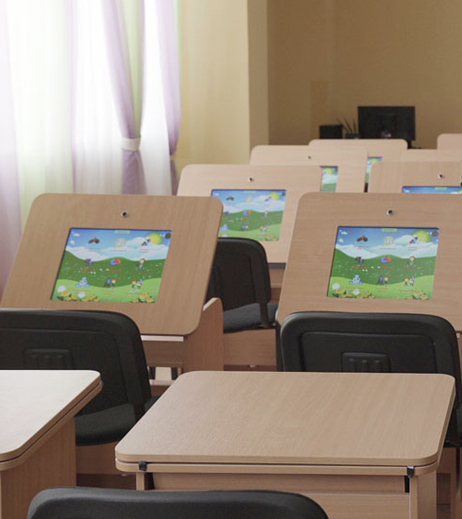 В Интерактивном классе все Интерактивные парты управляются с компьютера педагога, взаимодействуют между собой, подключаются к интерактивным доскам и панелям.