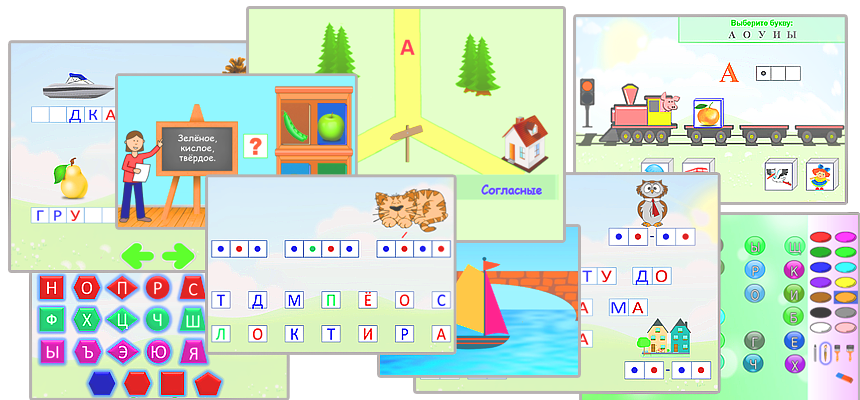Комплекс оснащен более чем 250 играми и заданиями, большая часть из которых предназначена для применения логопедами и дефектологами для решения следующих задач в работе с детьми: