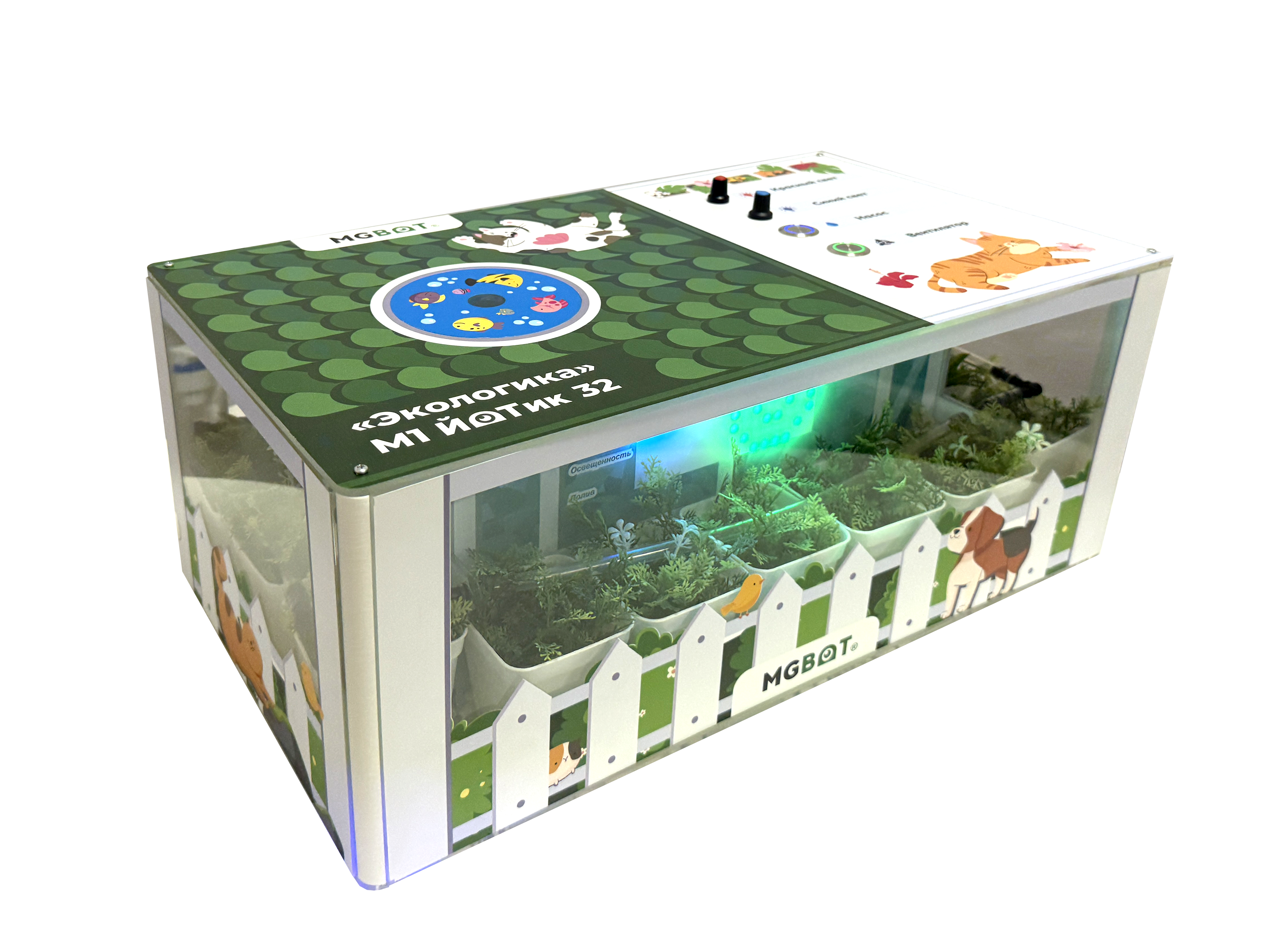 Образовательный набор «Экологика» М1 ЙоТик 32 представляет собой готовую экосистему умного выращивания, предназначенную для проведения занятий с детьми в возрасте от 5-ти лет, что позволяет с раннего возраста формировать базовые представления о принципах работы современных агротехнологий и электроники. Подходит для дошкольных учебных заведений (детских садов) и образовательных программ начального общего образования. Обязательно использование набора под контролем взрослых.