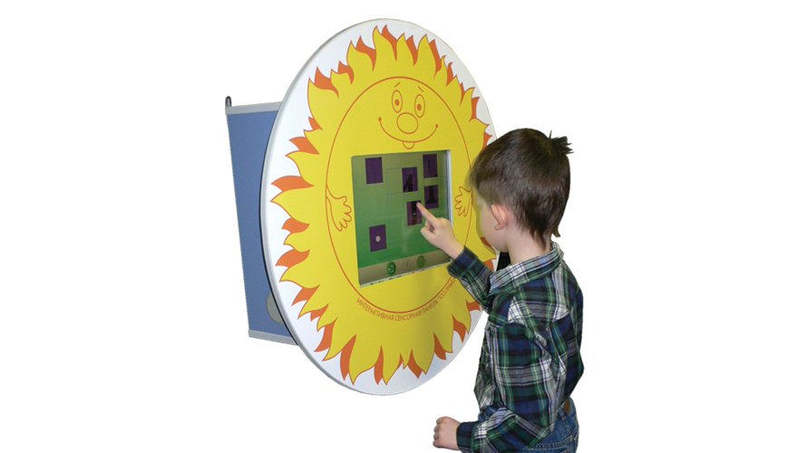 Детский навесной терминал «Солнышко» — это игровая интерактивная панель с яркими и развивающими играми, а также дополнительный комплект специализированных игр и заданий для работы педагога.